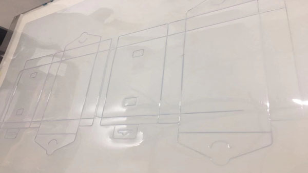 5. manually taking out the finished boxes ,PVC boxes crease by high frequency ,die cut the PVC boxes outside. Than boxes shape finished.